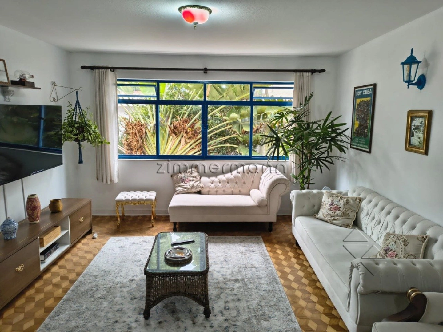 Conta com piso em tacos de madeira, ótima iluminação natural e armários na cozinha.